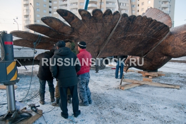 Улан-Удэ, 02 ноября 2011. Установка скульптуры "Беркут" на транспортной развязке в 20 "А" квартале.