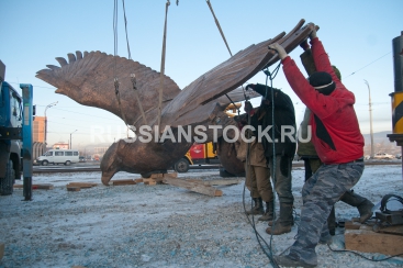 Улан-Удэ, 02 ноября 2011. Установка скульптуры "Беркут" на транспортной развязке в 20 "А" квартале.