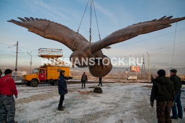 Улан-Удэ, 02 ноября 2011. Установка скульптуры "Беркут" на транспортной развязке в 20 "А" квартале.