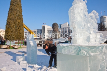 Улан-Удэ, 8 декабря. Строительство ледового городка на площади Советов.