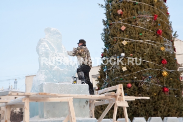 Улан-Удэ, 7 декабря 2012. Строительство ледового городка на площади Советов.