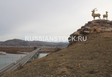 Бурятия, 21 октября 2015. Скульптура "Олени" после реставрации.