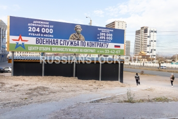 Улан-Удэ, октябрь 2023. Рекламный щит: Военная служба по контракту. Центр отбора военнослужащих на контракт.