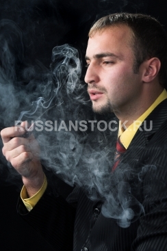 Мужчина курит трубку