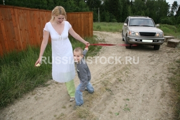 Мать с ребенком буксируют автомобиль