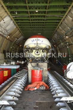 Глубоководные аппараты МИР-1 и МИР-2 в грузовом отсеке транспортного самолета АН-124-100 "Руслан"