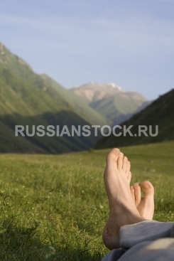 Ступни ног отдыхающего на фоне природы.