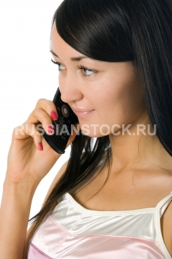 Девушка с мобильным телефоном на белом фоне.