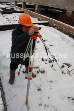 Строитель-геодезист за работой.