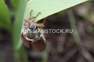Майский жук на листке тюльпана.