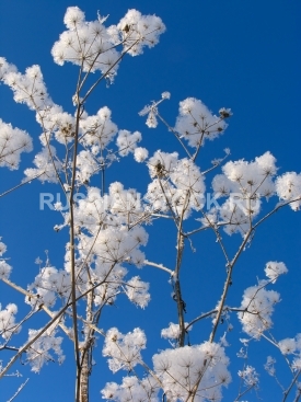 Ветки травы, покрытые снегом на фоне неба.