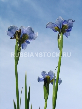 Синие цветы на фоне голубого неба.Ирис.