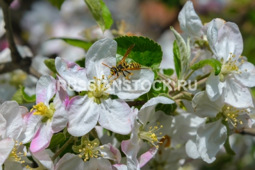 Пчела на цветущей яблоне.