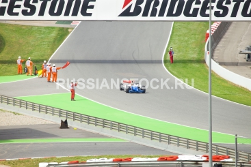 9 мая 2010: Гонки GP2 в Барселоне, Испания, BARCELONA- MAY 9: Automobiles of stage are fleet GP2 on line on may 9, 2010 in Barcelona, Spain.