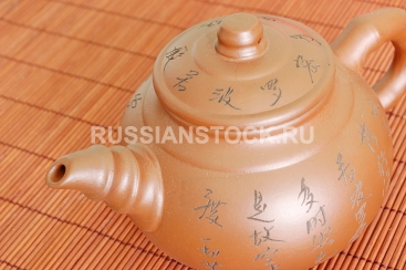 Глиняный китайский чайник /заварник/ на бамбуковой циновке
