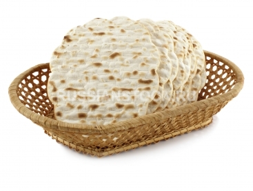 Маца в хлебнице на белом фоне