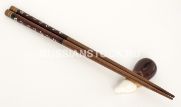 Деревянные палочки для еды, Sticks fo sushi on the brown bamboo mat
