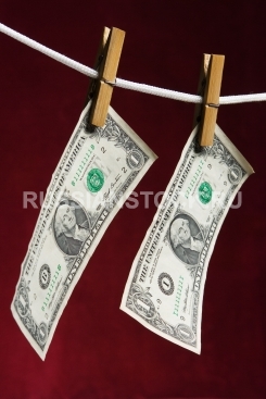Банкноты США на красном фоне.
