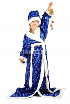 Девочка в костюме Деда Мороза на белом фоне