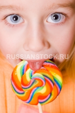 Девочка с карамелью на палочке