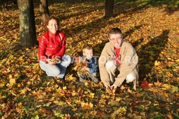 Портрет семьи на фоне желтых листьев