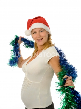 Молодая беременная блондинка перед новым годом
