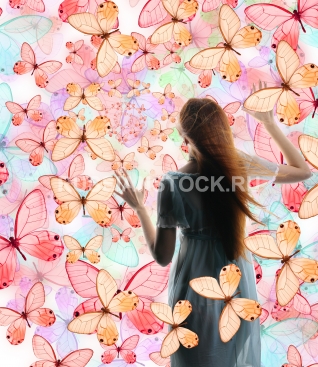 Девушка в окружении бабочек