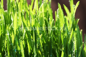 Зеленая трава с каплями росы