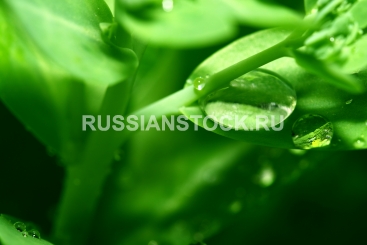 Капли росы на листе крупным планом