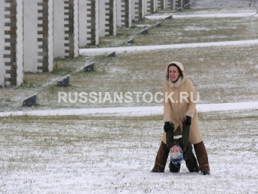 Мать играет с сыном mother with son play. winter.