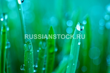 Зеленая трава с каплями росы крупным планом water drops on grass blade nature background.