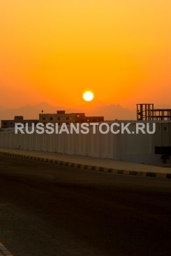 Закат над городом Sunset abowe construction in Egypt, Al Ghardaqah.
