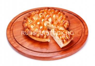 Пирог с творогом fresh pie with lemon filling isolated on white.