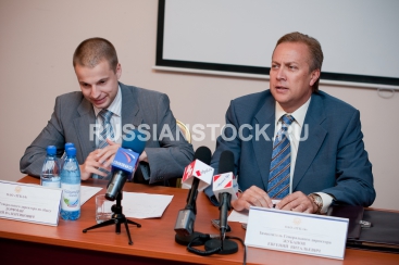 Улан-Удэ, 30 августа. Пресс-конференция руководства ОАО "ТГК-14". Евгений Жубанов, заместитель генерального директора, Юрий Дорфман, заместитель генерального директора по сбыту.