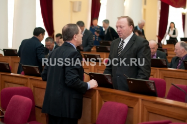 Улан-Удэ, 29 февраля. Депутаты Иван Калашников и Владимир Павлов на сессии Народного Хурала Республики Бурятия.