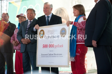 Улан-Удэ, 17 августа 2012. Чествование участников ХХХ Олимпийских игр в Лондоне: Любовь Волоса и Инна Степанова.