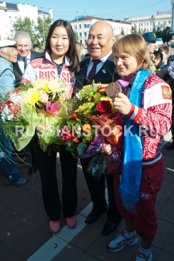 Улан-Удэ, 17 августа 2012. Чествование участников ХХХ Олимпийских игр в Лондоне: Любовь Волоса и Инна Степанова.