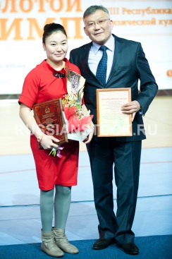 Улан-Удэ, 20 декабря 2012. Церемония вручения республиканской премии "Золотой Олимп-2012" за особые достижения в области физической культуры и спорта. на снимке: Ирина Баторова (участница Паралимпийских игр в Лондоне по стрельбе из лука, 6 место), победитель в номинации "Лучший спортсмен по инваспорту". /20121220R2/