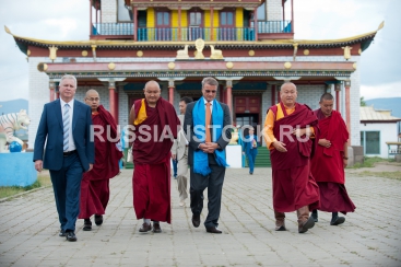 Улан-Удэ, 16 июля 2013. Герман Греф, президент и председатель правления Сбербанка России и глава Бурятии Вячеслав Наговицын в Иволгинском дацане.