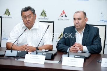 Улан-Удэ, 1 августа 2013. Баир Цыренов и Ирек Салимов на пресс-конференции посвященной назначению гендиректором улан-удэнского аэропорта "Байкал" Алексея Киселева.