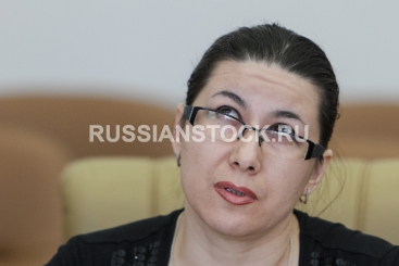 Улан-Удэ, 6 апреля 2015 (20150406). Брифинг в правительстве РБ. На снимке: Лариса Жидяева, жена художника Виктора Жидяева.