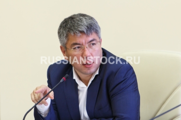Улан-Удэ, 13 сентября 2017. Заседании межведомственной рабочей группы по вопросам развития пассажирских перевозок водным транспортом и туризма в акватории озера Байкал с участием руководителя федерального агентства морского и речного транспорта Виктора Олерского и врио главы Бурятии Алексея Цыденовым.