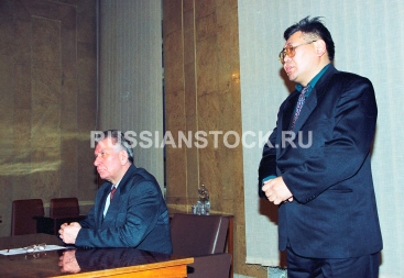 Улан-Удэ, 13 января 1999. В День российской печати, президент РБ Леонид Потапов поздравляет журналистов Бурятии с профессиональным праздником
