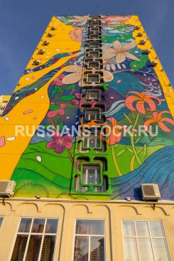 Мурал на стене гостиницы "Бурятия"