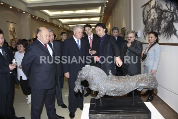 Улан-Удэ, 29 января 2009. Скульптор Даши Намдаков на открытии выставки своих работ в художественном музее им. Сампилова.