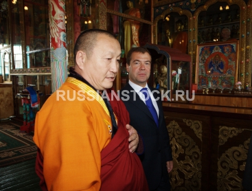 Президент РФ Дмитрий Медведев посетил в Бурятии монастырский комплекс Иволгинский дацан и встретился с главой российских буддистов Пандидо Хамбо ламой Дамбой Аюшеевым.