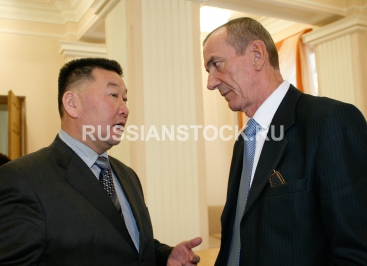 Даба Чирипов, глава Курумканского района и Владимир Рубан, министр строительства и модернизации жилищно-коммунального комплекса Республики Бурятия.