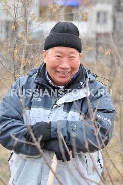 Геннадий Айдаев, мэр города Улан-Удэ, на субботнике по уборке мусора.