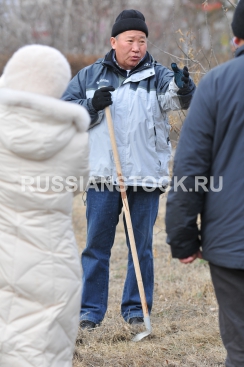 Геннадий Айдаев, мэр города Улан-Удэ, на субботнике по уборке мусора.