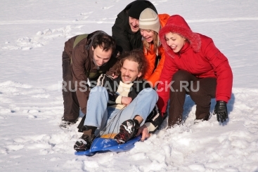 Друзья катаются на санках